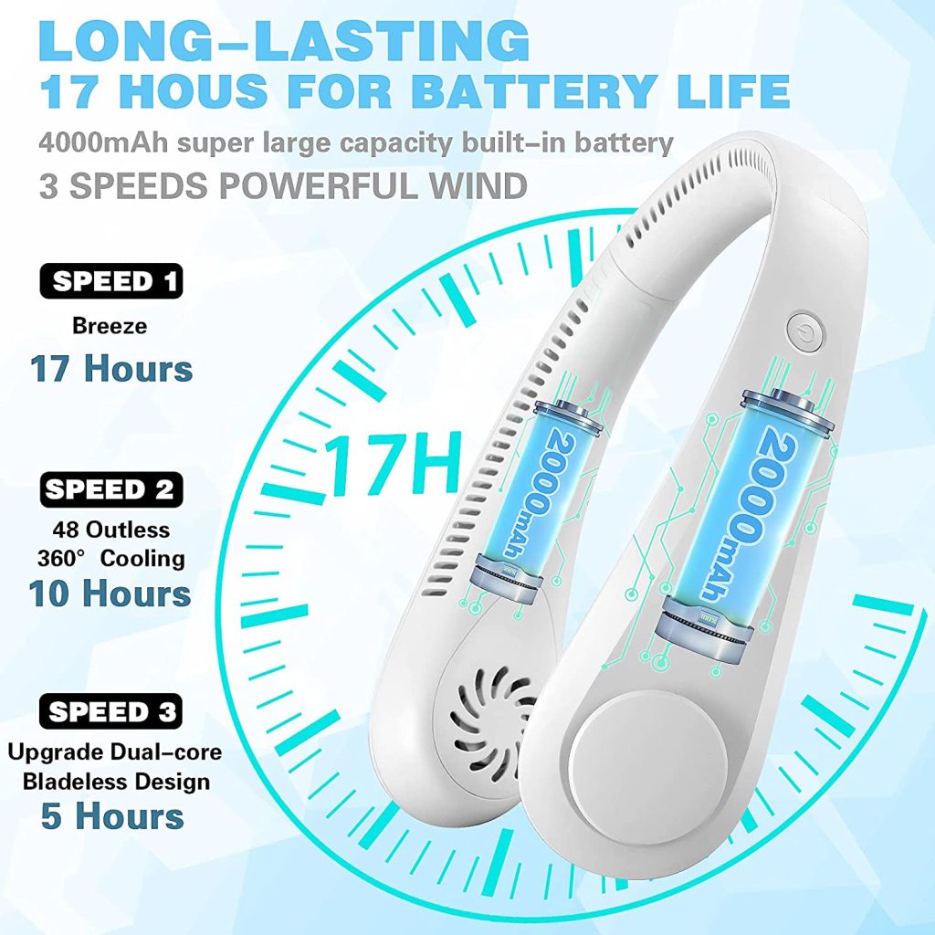 The fan head has a large 70° Angle adjustment to direct air to where you want it. As a summer item, the performance of the portable neck fan is satisfactory.