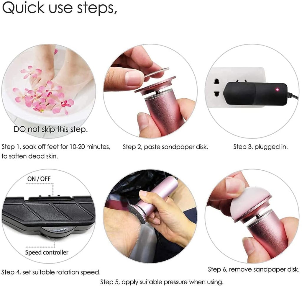 Easy to control fast or slow speed, won’t hurt healthy feet skin ,perfect for women and men use!