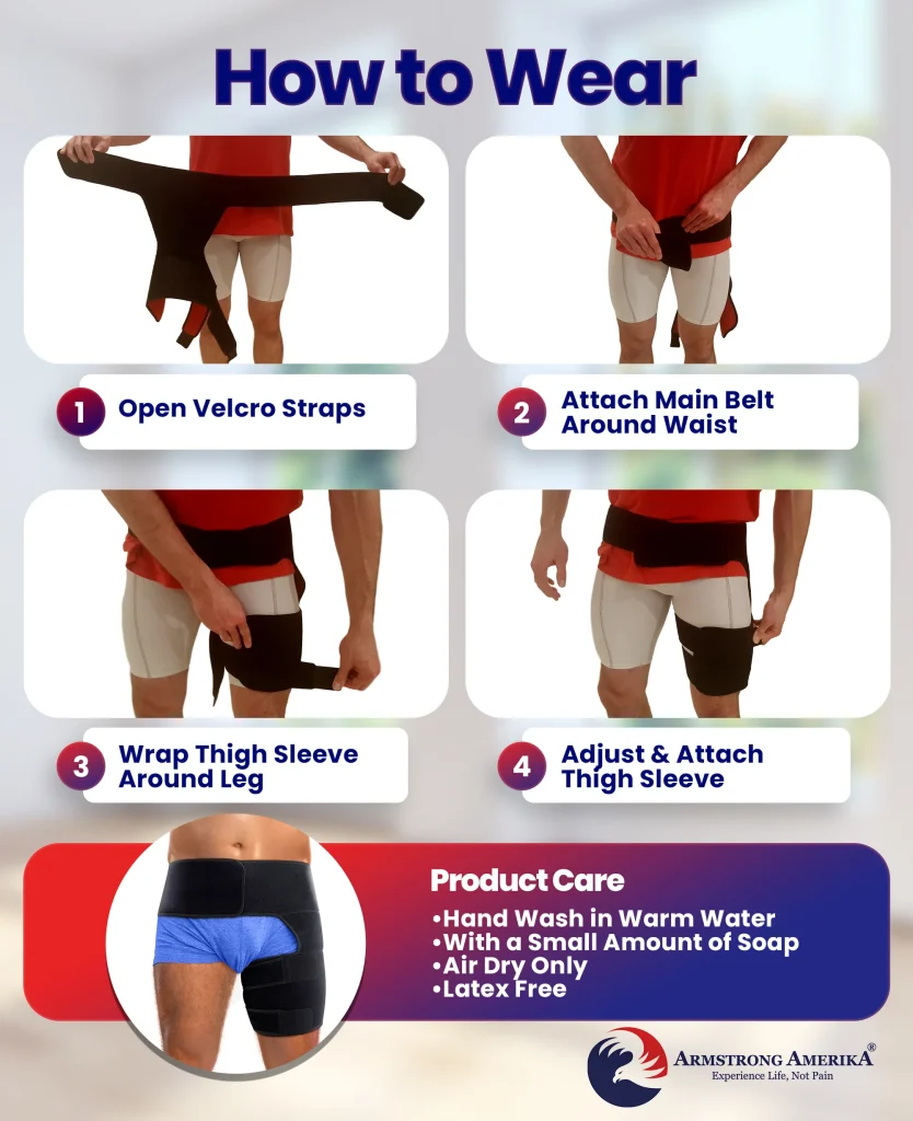 4. Anti-slip design: The waistband prevents the thigh support wrap from slipping or sliding during physical activity.