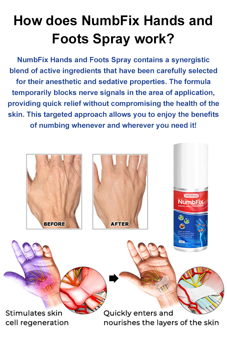 By addressing the root causes of numbness, joint pain, and hand and foot discomfort, our spray not only provides relief from specific symptoms but also contributes to your overall sense of well-being, allowing you to enjoy life to the fullest.